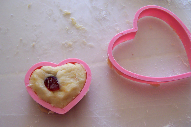 Flour a 2-3" cutter and cut out desired shapes of the dough.